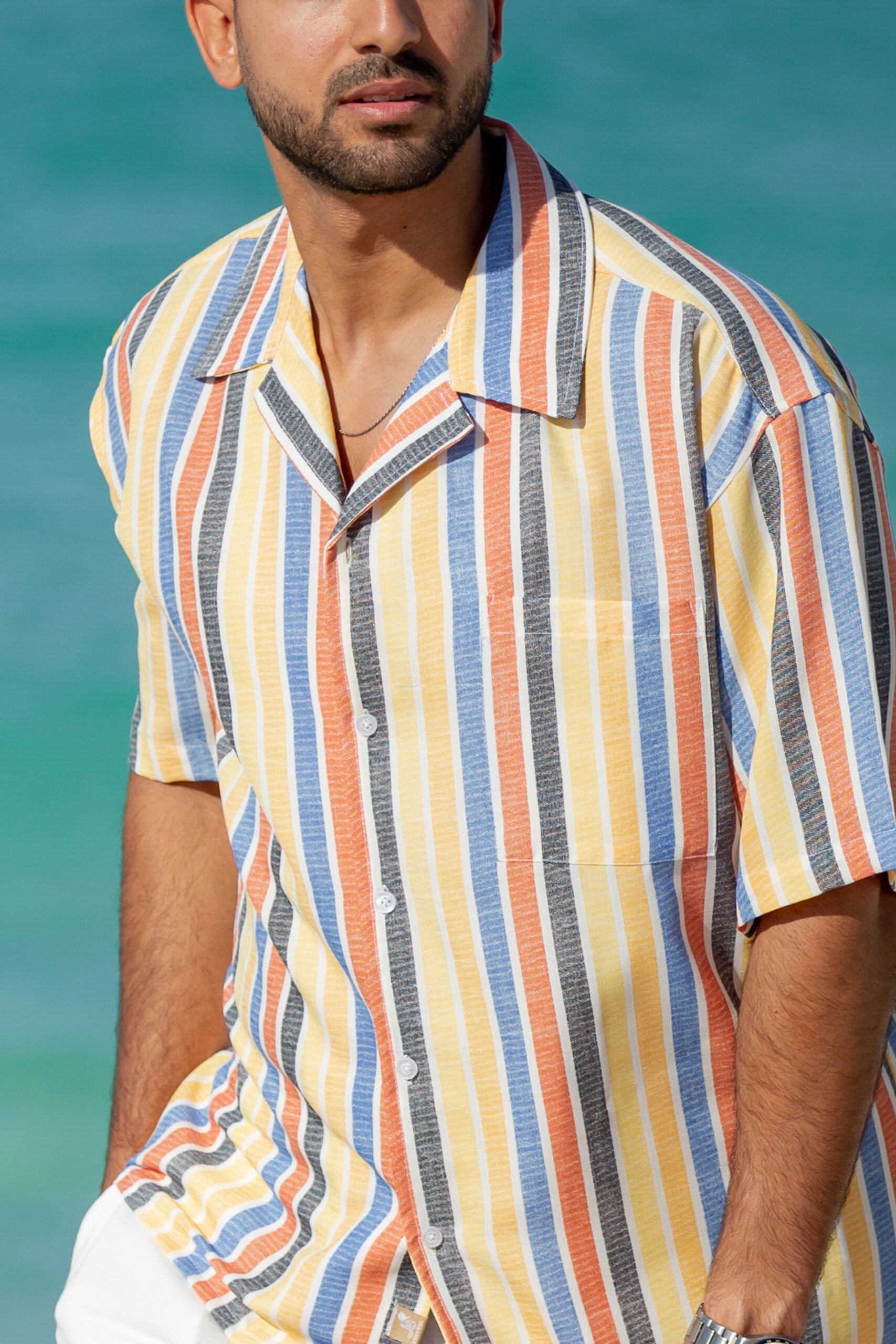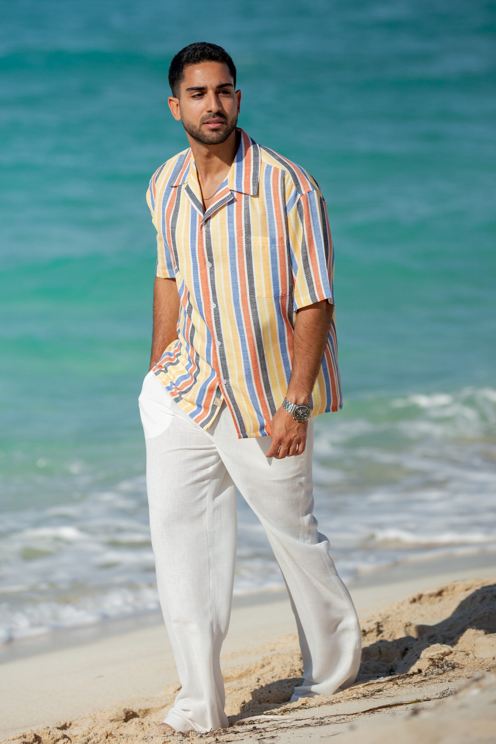 The Oversized Pattern Shirt, crafted from a durable yet soft blend of linen and cotton, exudes summer elegance. Its elegant design features cool colors and a charming pattern, all created with love.